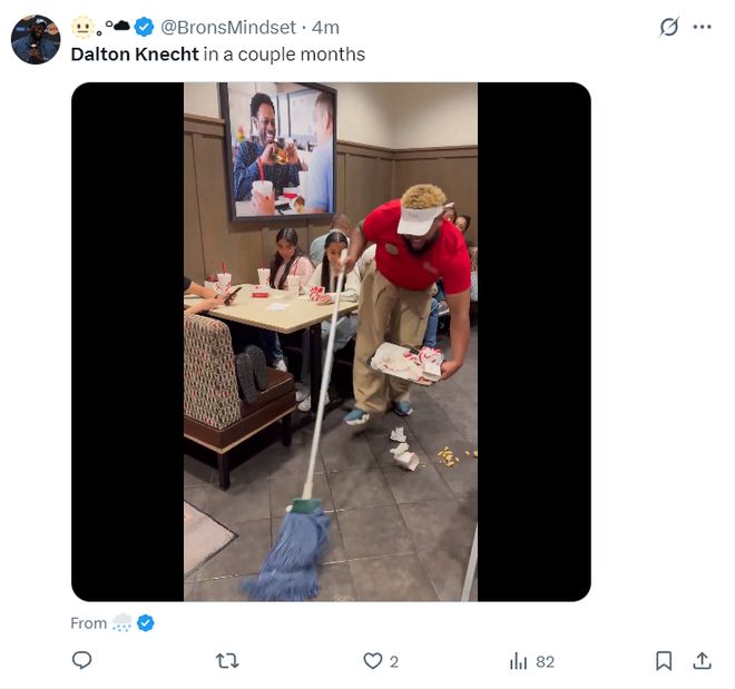 湖媒曬出快餐店服務員收拾垃圾的視頻嘲諷克內克特:幾個月後的克內克特將被掃地出門。