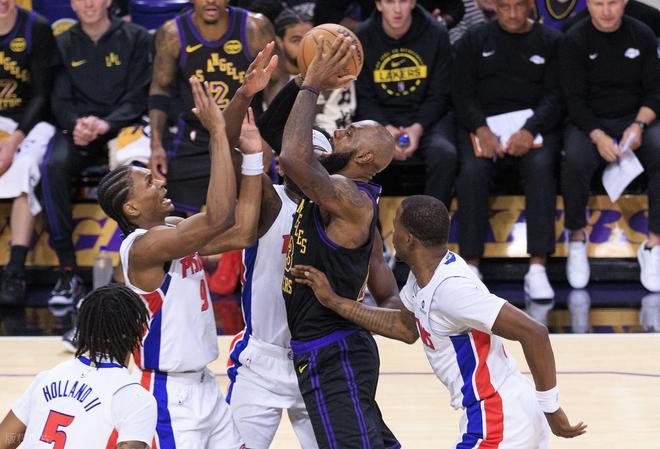 進入第二節,比賽走勢開始發生變化。湖人進攻效率出現明顯波動,一度被活塞將分差拉大到14分。雖然詹姆斯挺身而出,單節貢獻10分並命中3記三分,幫助湖人縮小差距,可活塞的回應同樣迅速。坎寧安穩定輸出,串聯全隊進攻,活塞始終牢牢掌控比賽節奏。半場結束,活塞70-65繼續領先。
