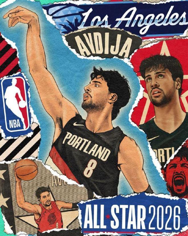 開拓者主場球迷鼓掌祝賀阿夫迪亞首次入選全明星,阿夫迪亞起立致謝,楊瀚森在一旁鼓掌祝賀。