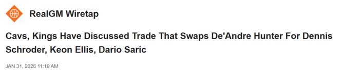 名記Scotto的最新消息顯示,騎士與國王已就一筆交易展開磋商,具體方案為亨特前往薩克拉門托,而丹尼斯-施羅德、基翁-埃利斯和達裏奧-沙裏奇則轉投克利夫蘭。