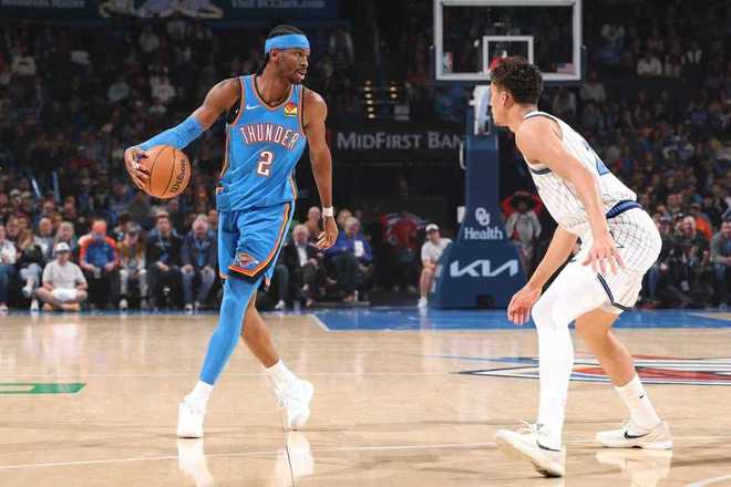 次節比賽,雷霆進攻火力下滑未能連續兩節單節得分30+,但依然是有條不紊壓製魔術。雷霆繼續碾壓魔術擴大59-24領先35分巨大優勢,魔術之後有所反撲追分。前兩節比賽,雷霆46中15,其中三分20中7,亞曆山大12分7助攻,多爾特4中4得到13分與喬11分。魔術三分20中5,全隊沒有球員得分上雙,雷霆單節29-27再贏2分,上半場結束雷霆擴大68-41領先魔術28分優勢。