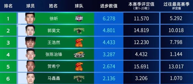 CBA官方公布了第一階段進步最快的球員,他就是來自廣州男籃的徐昕。在第一階段的23輪比賽中,徐昕總共出戰了20場,場均上場23.6分鍾,能夠得到10.7分8.0籃板0.8助攻2.1蓋帽投籃命中率75.7%,這五項數據都是他職業生涯最高。另外徐昕還是第一階段的國內籃板王和聯盟封蓋王:場均8個籃板球,在國內球員中排名第一;場均2.1次的封蓋,在全聯盟中排名第一。