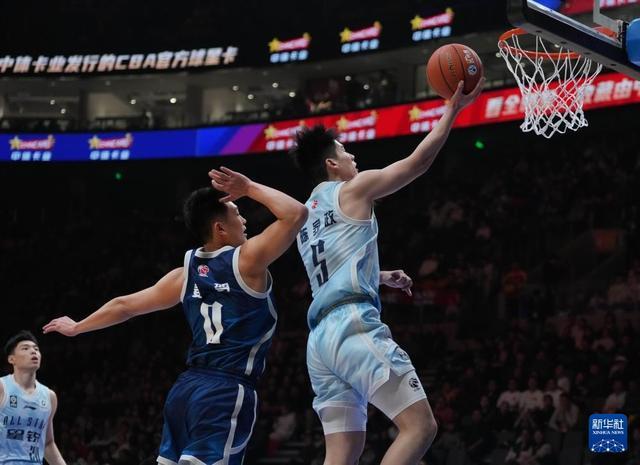 3月7日,CBA星銳隊球員陳家政(右)在比賽中突破上籃。新華社記者 孟永民 攝