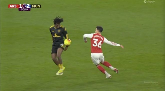 值得一提的是,多古的淩空抽射進球亦被阿森納球迷認為手球在先。不過,VAR視頻助理裁判確認曼聯3000萬歐元鐵閘是用大腿將球停到身前,並不存在手臂觸球。