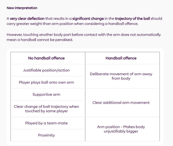 這解釋了主裁克雷格·鮑森和VAR視頻助理裁判組都沒有介入馬奎爾這次手球的原因。